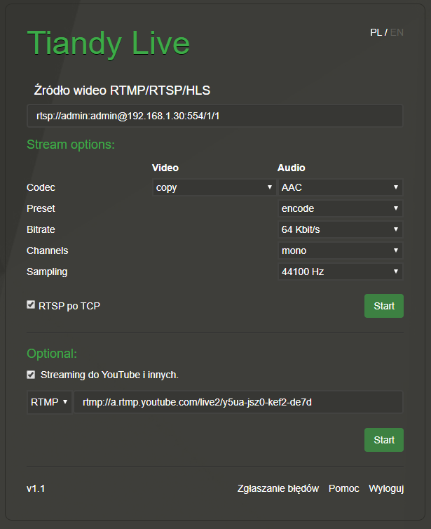 Dzięki obsłudze DHCP i domeny lokalnej streamer jest bardzo prosty w obsłudze, wystarczy podłączyć zasilanie i zalogować się do niego przez przeglądarkę internetową. Menu konfiguracyjne jest dostępne w języku polskim. Możliwe jest również strumieniowanie wideo bezpośrednio z urządzenia. Należy wtedy pamiętać, że każdy kolejny oglądający będzie powodował obciążenie naszego łącza internetowego.