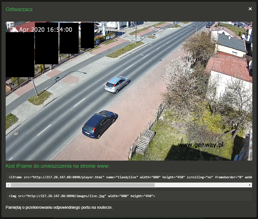 Do współpracy ze streamerem wystarczy dowolna kamera IP, która wysyła strumień RTSP i gdzie obraz jest kodowany H.264, a dźwięk AAC np. Tiandy TC-NC43M, z podłączonym modułem audio np. KLIK! Można również skorzystać z kamer, które już posiadają wbudowany mikrofon np. Tiandy TC-NC44M.