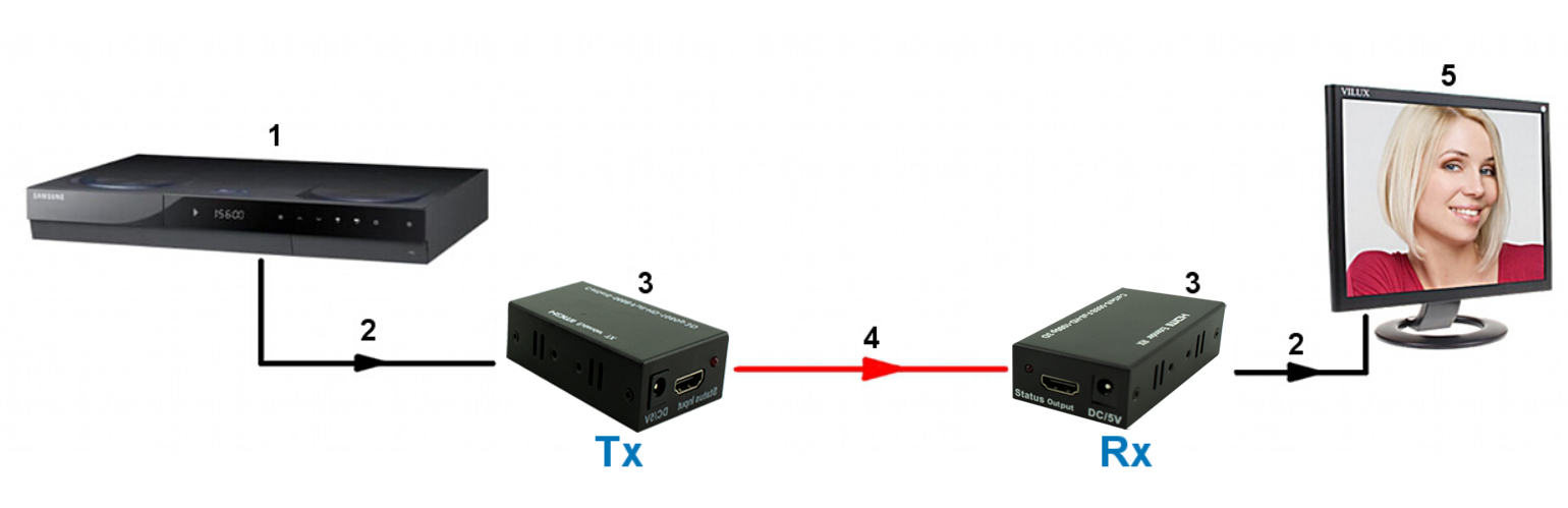 Urządzenie umożliwia przesył sygnału wysokiej rozdzielczości do odbiornika telewizyjnego wyposażonego w złącze HDMI poprzez skrętkę komputerową kat. 5e lub 6.